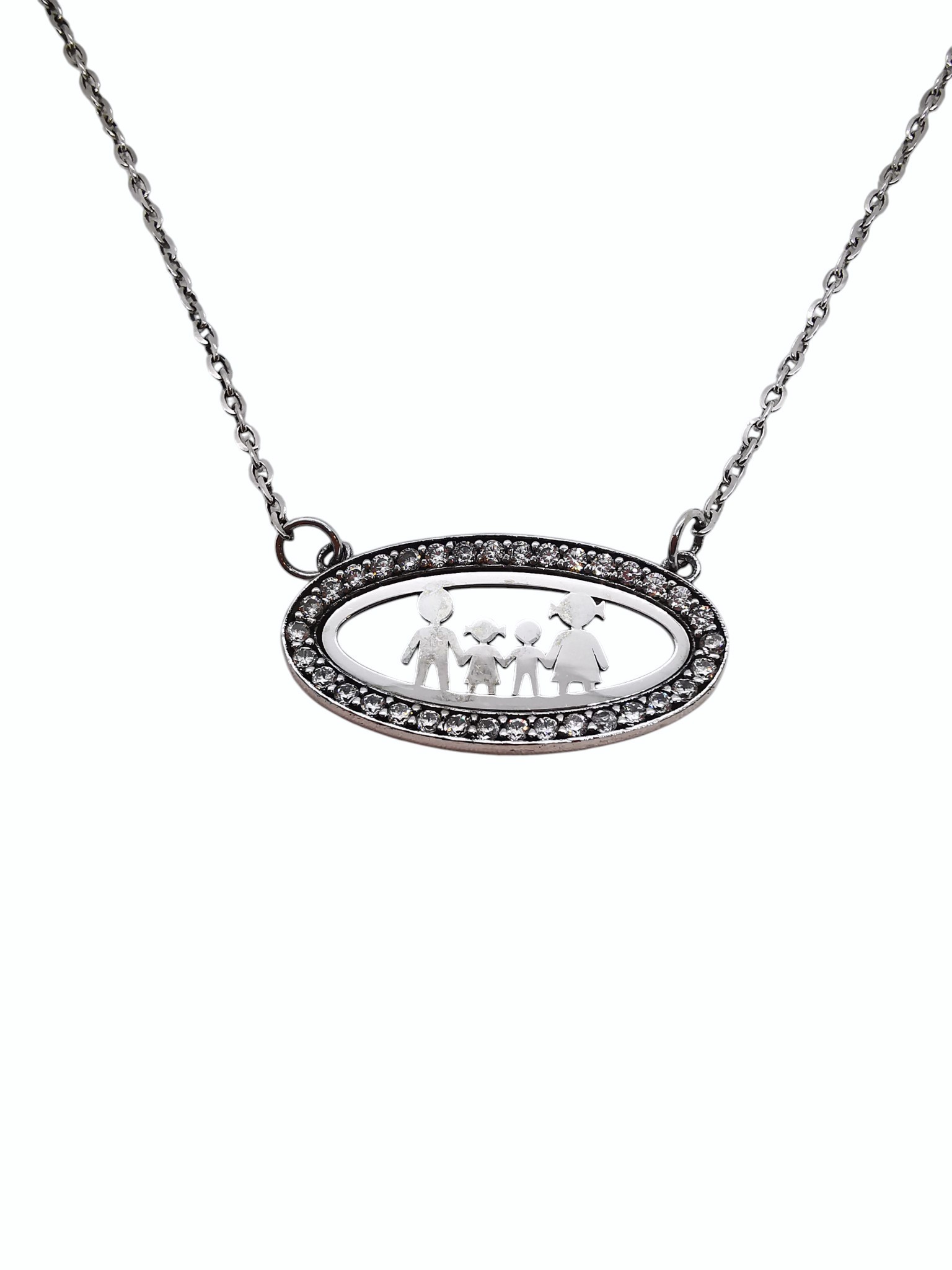 Κολιέ ασημένιο οικογένεια με πλαίσιο